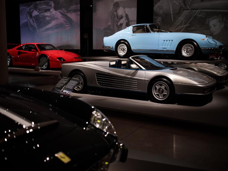 In esposizione troviamo anche la Ferrari 400 Superamerica del 1959, un pezzo unico della collezione, su cui si nota una nuova impronta stilistica. Altra icona che rappresenta gli anni d’oro è la Ferrari F40, richiesta da Agnelli nel 1989, si distingue sia per gli interni, con sedili in tessuto nero, che per la frizione elettronica Valeo.