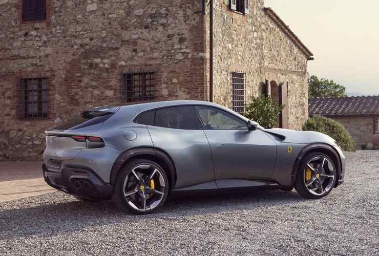 Lunga 4,97 metri, larga 2,03 m e alta 1,59 m, la Purosangue è stata un’opera di Manzoni, designer della Ferrari. Il frontale massiccio con l’enorme bocca riprende alcuni modelli della gamma del Cavallino, ricordando anche l’Aston Martin DBX e qualche auto a ruote alte giapponese. Il peso di appena 2.033 kg a secco (2.180 kg coi liquidi), ovvero quasi 200 kg in meno della Lamborghini Urus. Quest’auto a quanto si sa è anche tra le mani di John Elkann, presidente proprio della Ferrari.