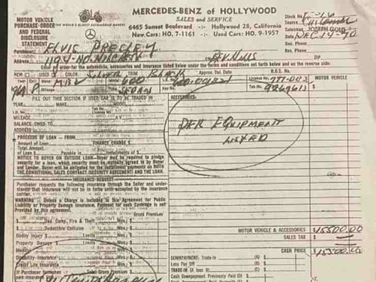 In questo navigare, ci siamo accorti, che, 10 giorni fa, è stata venduta in Pennsylvania, la Mercedes-Benz 600, appartenuta al “Re” da 1970 al 1975 (quando la regalò ad un suo storico amico), comprata nuova presso la concessionaria di Hollywood.