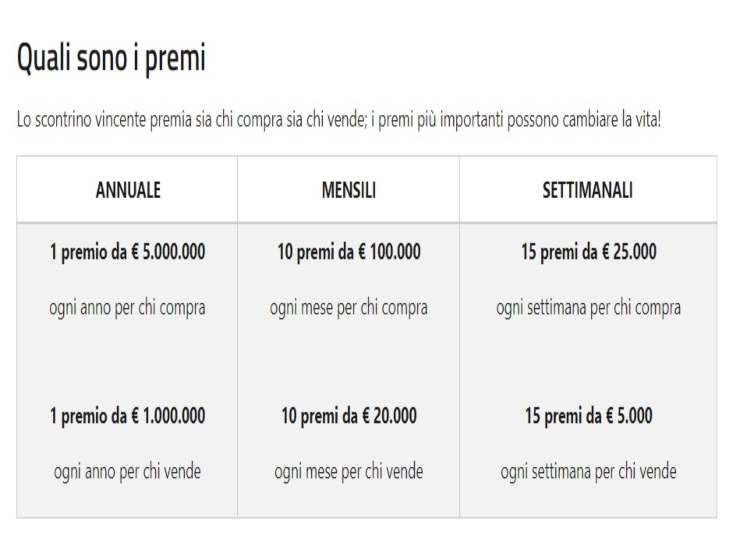 Se, e quando, avrà inizio il gioco, vedrà delle estrazioni, settimanali, mensili e annuali, con montepremi diversi, sia per gli acquirenti, che per i venditori.