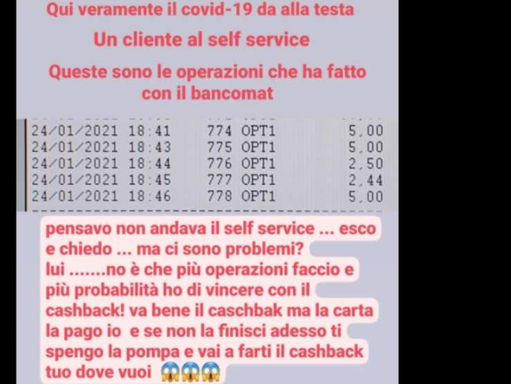 Chiedendo all’automobilista perché avesse fatto 5 transazione separate, per 20 euro di carburante, si è sentito candidamente rispondere, che per poter vincere il Supercashback bisogna fare tante transazioni.