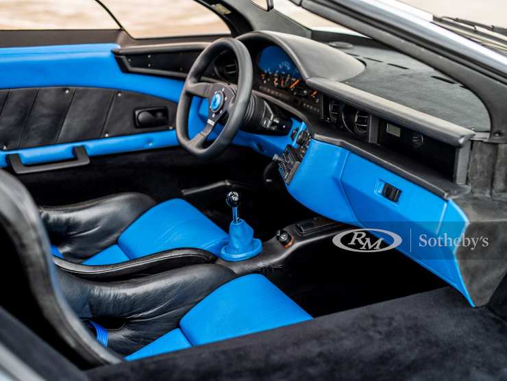 Gli interni sono, come usanza delle sportive dell’epoca, molto spartani e semplici. Sedili avvolgenti marchiati Recaro e cinture di sicurezza da gara. Volante Sparco e strumentazione che ricorda molto quella di una berlina Mercedes dell’epoca.
