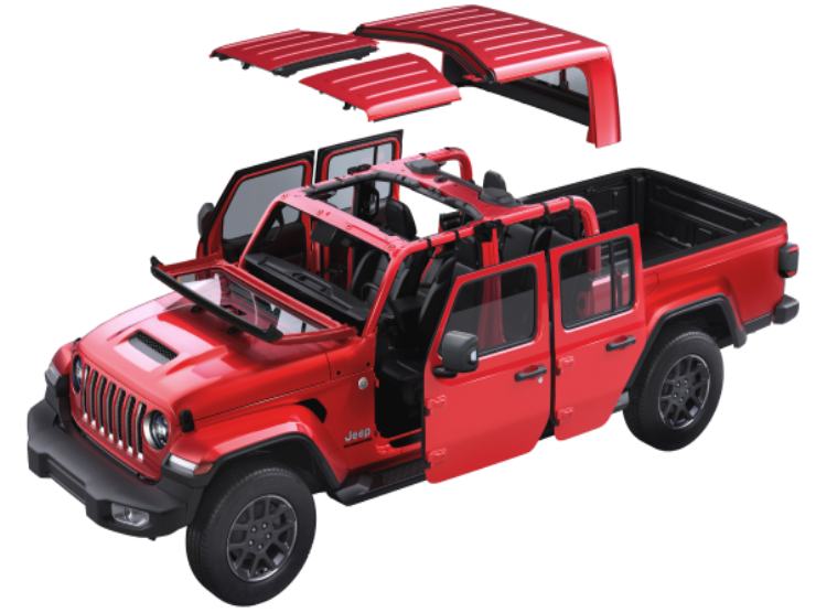 Le linee del nuovo Gladiator, sono quelle inconfondibili dei modelli Jeep. Imponente e muscolosa, solo a guardarla trasuda robustezza nei materiali. Le superfici vetrate sono piccoline, e, la caratteristica più interessante, è rappresentata da un “ritorno al passato”, con tetto, sportelli e parabrezza che si possono togliere, rendendo la Jeep, totalmente scoperta per le “avventure” estive.