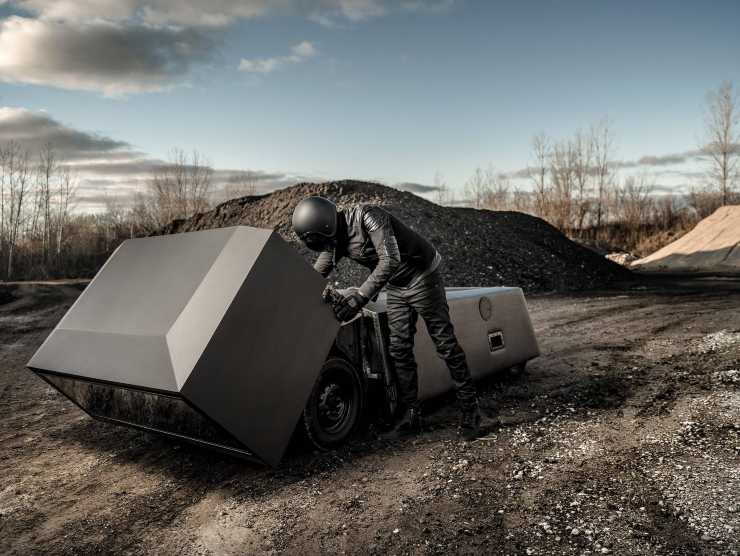 La “bizzarra quattro ruote”, ha un aspetto “trapezoidale”, la mascherina frontale è formata da un enorme specchio, con tre fasce a Led. E’ stata realizzata interamente in acciaio, senza portiere e può ospitare fino a quattro passeggeri.