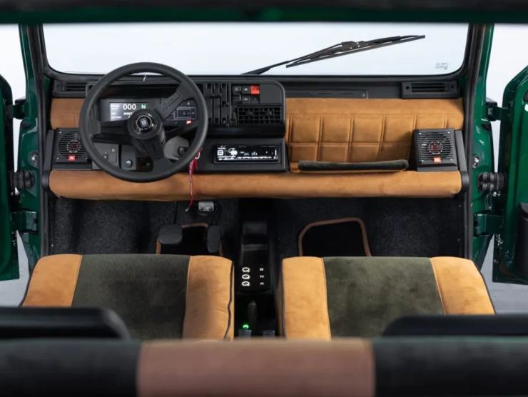 Nell’abitacolo invece, sembra di essere in una Rolls-Royce, i sedili e gli interni sono rivestiti in alcantara color cammello con velluto verde scuro a contrasto, un notevole impianto sound con casse JBL, e ancora, un volante sportivo a 3 razze ed una strumentazione completamente digitale perfettamente incastonata al posto della vecchia analogica.