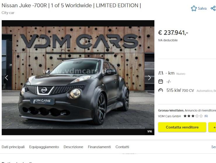 La Swm, in collaborazione con Nissan, ha prodotto ben 5 di queste super Juke da 700 cavalli, ed oggi sembra sia arrivato il momento di comprarne una. Certo il prezzo non è proprio accessibile, perché oltre alla potenza di Una Ferrari, costa anche la stessa cifra, anche se abbiamo trovato per voi un’offerta sul sito autoscout24.