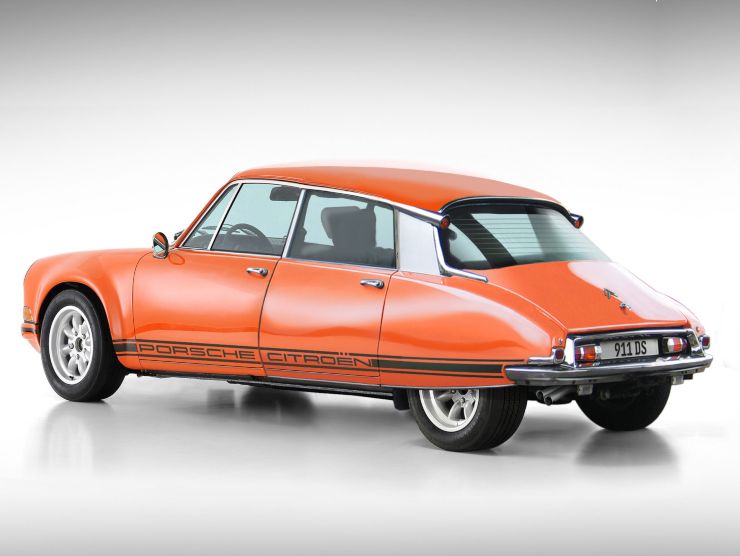 Il risultato della fusione delle auto insieme, è qualcosa di veramente incredibile, l’anteriore, fino agli sportelli è quello di una Porsche 911, mentre da metà auto fino alla fine troviamo una Citroen DS. Il colore scelto per la verniciatura è un tipico arancio Porsche molto in voga negli anni ’70, con la banda adesiva laterale di colore nero recante la scritta “Porsche Citroen”.