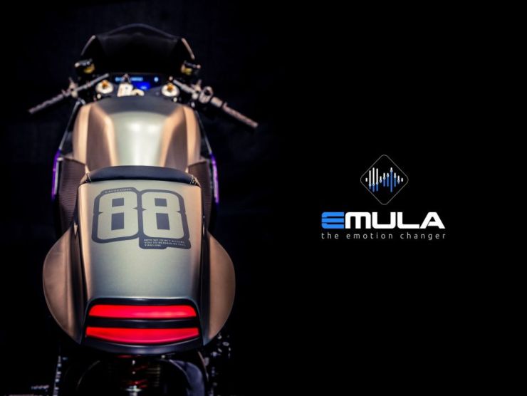 Nella carena anteriore si nota la presenza delle alette per generare “deportanza”, la versione definitiva punta a superare i 250 km/h e accelerare da zero a 100 Km/h in meno di tre secondi. L’innovazione sta tutta nel sistema che replica il comportamento di una moto a benzina. Vi chiederete come fa la Emula a mettersi nei panni di una moto benzina? I suoi creatori hanno creato e poi testato su strada diversi modelli, misurandone accuratamente prestazioni, sound, e vibrazioni.