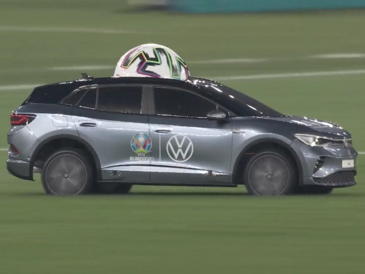 A questo punto, come si vede dalle foto, prese direttamente dalle telecamere Rai, entra nel campo di gioco un’automobile, per portare il pallone al centro campo ed essere prelevato dall’arbitro.