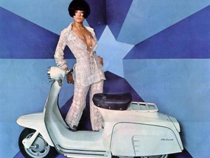 La Regina della televisione italiana nel calendario, viene immortalata su modelli di Lambretta del 1969/1970, l’anno in cui venne stampato il calendario.