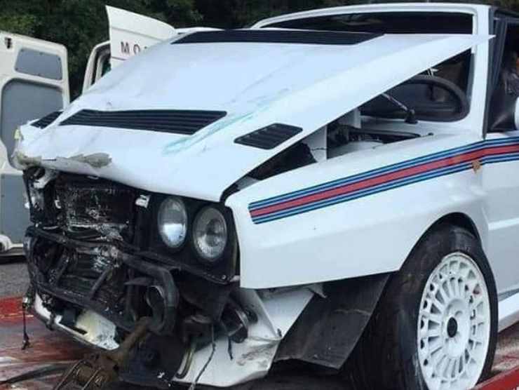 Una Lancia Delta Integrale è il sogno di tutti gli appassionati di automobilismo. Per questo se la si vede incidentata ci fa piangere.