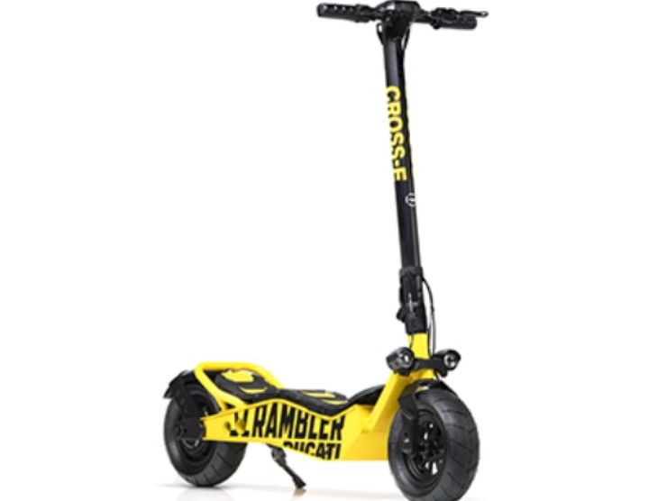 Il monopattino CROSS-E, a marchio Scrambler Ducati, monta ruote da 10” e pneumatici tubeless cosiddetti “fat”, anti-foratura (110/50-6.5’’), adatti anche a tratti di strada sterrata o molto irregolare. Il motore brushless fornisce una potenza di 500W (peak power fino a 550W) e garantisce uno spunto eccellente sia in partenza sia su tratti in salita, senza subire rallentamenti di andatura.