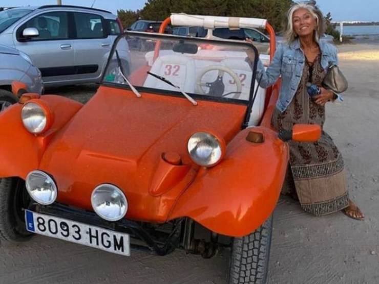 Come vedrete dalla foto, Paola Marella è in compagnia della sua dune buggy, probabilmente affittata proprio a Formentera. E quale migliore mezzo per muoversi sulla sabbia dell’isola spagnola, visto che la dune buggy è stata concepita proprio per questo.
