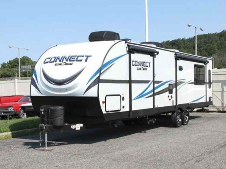 Il KZ Connect è dotato di un cappuccio anteriore in fibra di vetro a risparmio di gas aeronautico. Ci sono 3 slide out con toppers e tende da sole elettriche. Un jack di alimentazione rende facile l’aggancio e pieno di grafica, ruote in alluminio, illuminazione a LED, vano portaoggetti con chiave, gradini di ingresso illuminati e altoparlanti esterni in modo da poter attutire il fastidioso suono di madre natura.