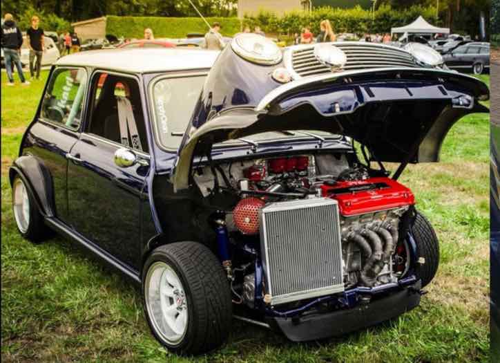 A quanto pare, montare motori sovradimensionati di origine giapponese su una Mini non è un’attività così rara: la vettura nella foto sopra infatti monta un motore Honda da ben 500 cavalli!