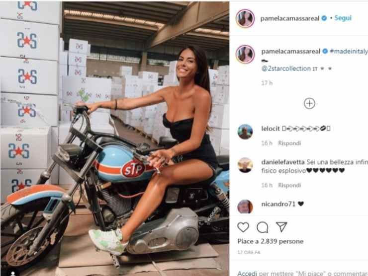A proposito di apparizioni. Quella su Instagram manda in visibilio i suoi followers. Lì Pamela Camassa non si mostra con il suo compagno di sempre, Filippo Bisciglia, ma con un’altra bellezza apprezzata praticamente da tutti. Appassionata di motori e non. Una Harley Davidson. Abbronzatissima e sorridente, raccoglie i complimenti dei suoi sostenitori.