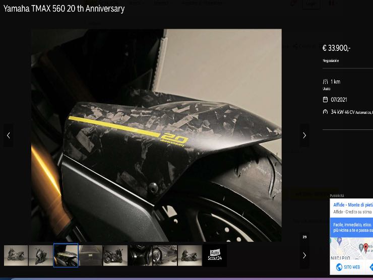 Lo Yamaha TMAX 560 Anniversary ha una potenza di 34 kW per 46 CV ed è in vendita a 33.900 euro trattabili. Sullo stesso sito di annunci, è presente anche un altro esemplare identico, sempre a zero km, addirittura ad un prezzo di 38.000 euro.