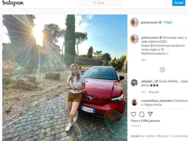E così, Greta Scarano, in uno dei suoi ultimi post su Instagram si mostra accanto a una Volvo elettrica. In uno dei luoghi simbolo della grandezza di Roma, l’Appia Antica. Non un caso per lei che è romanissima. “Dovunque vado, ci vado elettrica” scrive nel post Greta Scarano.