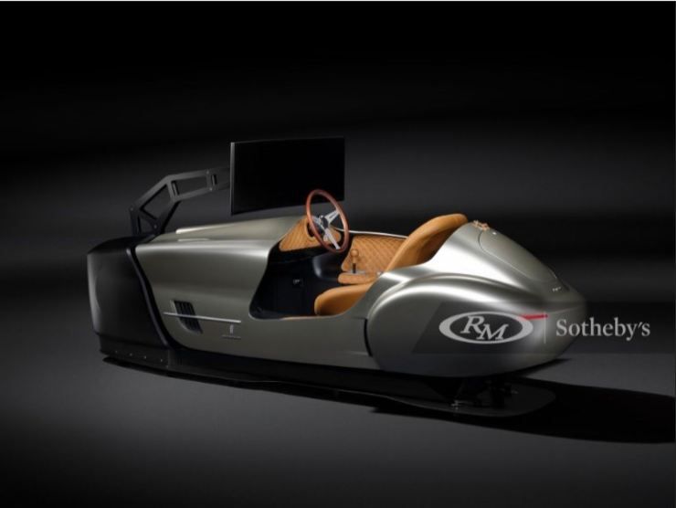 Un singolo sedile è circondato dalla stessa pelle Connolly color marrone tabacco che riveste la cabina del simulatore. Che a sua volta è avvolta in uno stretto guscio esterno, color Argento Vivo, che ricorda molti design di auto classiche senza tempo. Un televisore widescreen curvo è posizionato sopra il sedile del conducente. Offrendo un’esperienza di simulazione coinvolgente.