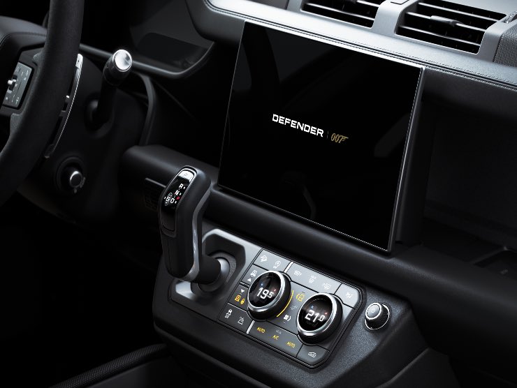 A differenza della famosa Aston Martin DB5 di Bond, il Defender non ha fantastici gadget spia. Ciò che ha, tuttavia, è un mucchio di marchi esclusivi, tra cui un badge posteriore “Defender 007”, piastre del battistrada illuminate e lampade a pozzanghera. Il sistema di infotainment touchscreen presenta anche una speciale animazione di Bond.