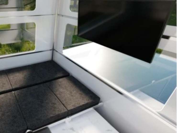 Nonostante sia molto piccolo, il CyberLandr ha tutto. E non è certo qualcosa di arrangiato o spartano. Il soggiorno, per esempio, è molto lussuoso. E si può controllare facilmente il clima e l’illuminazione tramite voce o app. Smart TV/monitor UHD da 32″ 4k con Netflix integrato, Prime, AppleTV, YouTube. I sedili reclinabili e indipendenti possono essere riposizionati o spostati all’esterno per il tramonto. Audio surround per film e musica in streaming.