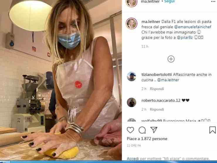 In uno dei suoi ultimi post su Instagram, Maria Leitner però non si mostra vicino a una supercar. Ma indaffarata in cucina. Dalla F1 alle lezioni di pasta fresca. Chi l’avrebbe mai immaginato” scrive nel messaggio di accompagnamento.