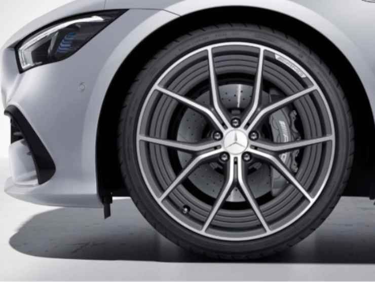 Ride Control+ Amg con nuovo sistema di sospensioni tra le dotazioni della Mercedes-Amg 63 GT E Performance. Ciò che impressiona è la dotazione di serie, che comprende anche la versione adattata dei freni ceramici in materiale composito Amg ad alte prestazioni.