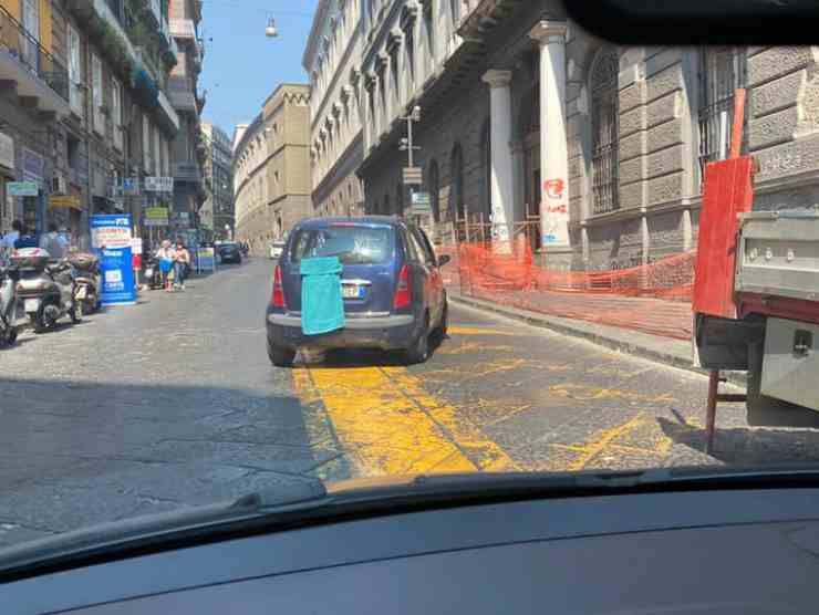 Come documentato dall’immagine pubblicata, a Napoli vi sarebbe una nuova tendenza. Quella di entrare nelle Zone a Traffico Limitato della città, abusivamente. Si dirà: male per loro, che verranno multati. Lo auspichiamo, anche se i “furbetti” hanno escogitato un nuovo trucco per farla franca. Coprire la targa della propria automobile con un asciugamano.