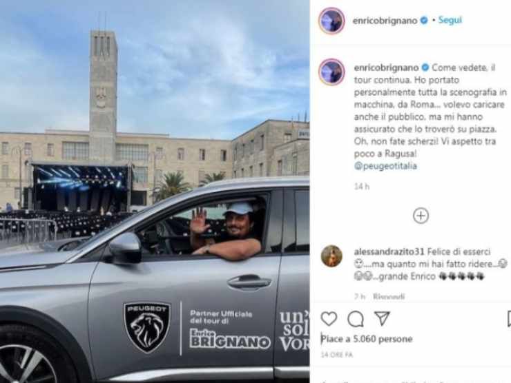 “Come vedete, il tour continua. Ho portato personalmente tutta la scenografia in macchina, da Roma… volevo caricare anche il pubblico, ma mi hanno assicurato che lo troverò su piazza. Oh, non fate scherzi! Vi aspetto tra poco a Ragusa!” scrive nel messaggio di accompagnamento. E il post fa il pieno di like e interazioni.