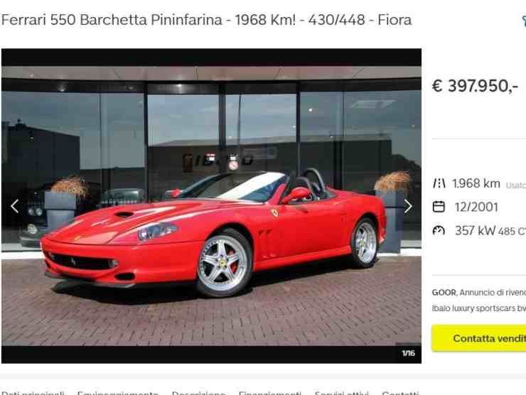 Parliamo della Ferrari 550 Barchetta. Progettata da Pininfarina è una decappottabile unica. In totale sono state prodotte solo 448 Barchette e quella in vendita è la numero 430. Pininfarina ha disegnato ancora una volta una carrozza mozzafiato. Le linee della 550 Maranello fanno impazzire non solo gli appassionati.