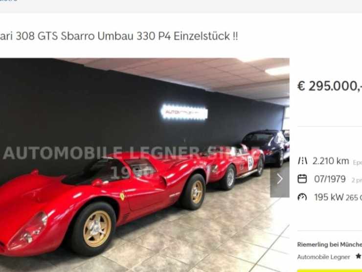 Le modifiche su questa Ferrari sono ad opera del noto designer Franco Sbarro. Che intervenne sul veicolo di Maranello ben 35 anni fa. Nel 1986. Il nome completo è Ferrari 308 GTS Sbarro Umbau 330 P4. Di Ferrari 330 P4 ricostruite ve ne sono pochissime. Sono state costruite solo 3 330 P4 reali. E, dovunque siano, chi ce l’ha se le tiene ben strette.