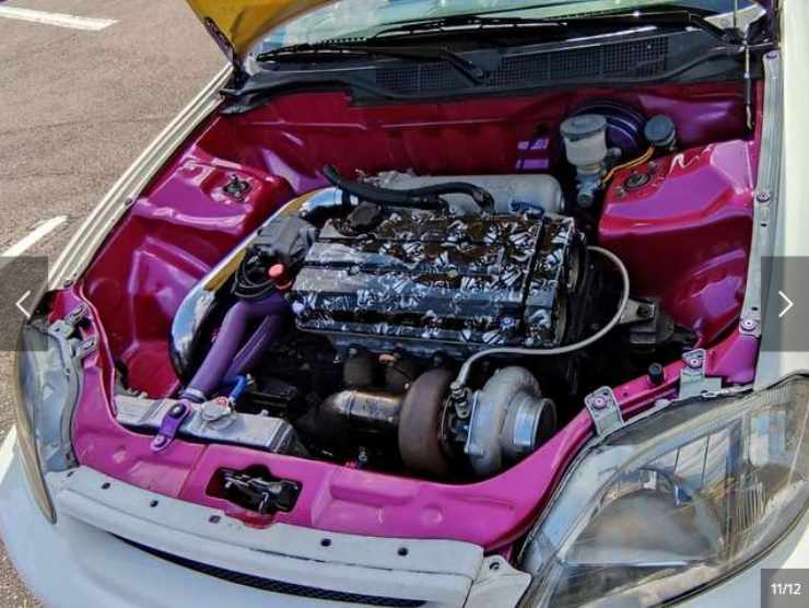 A quest’auto in vendita sul portale di Autoscout 24 il proprietario ha apportato qualche elaborazione di troppo, infatti alla piccola Honda Civic EK del 1997 è stato cambiato il motore per inserire un nuovo e più performante B18 di derivazione Integra, che a sua volta è stato aperto, decompresso e lavorato in tutti i suoi componenti interni per ospitare un turbocompressore grande quanto il motore.
