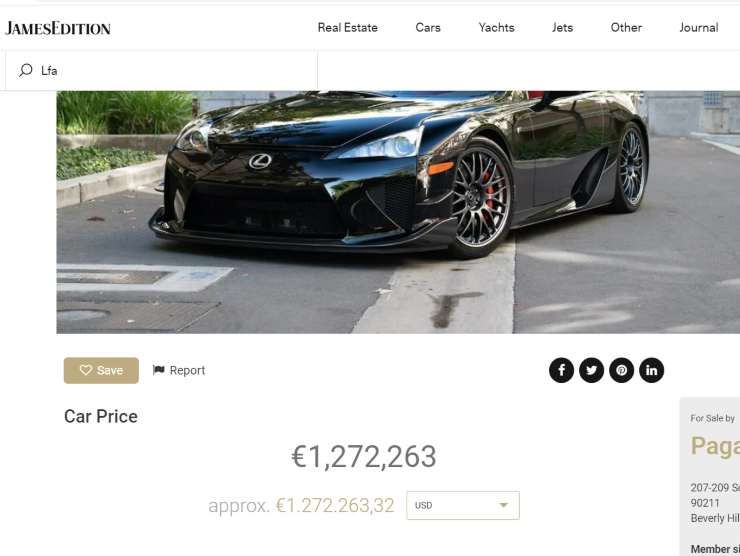 Si tratta di una coupé di colore nero. Molto elegante e raffinata. La Lexus LFA Nurburgring Edition ha percorso poco più di 3.000 chilometri. L’auto si trova attualmente negli Stati Uniti. A Beverly Hills, per la precisione. Il venditore comunica che può anche essere preso un appuntamento per provare il bolide.