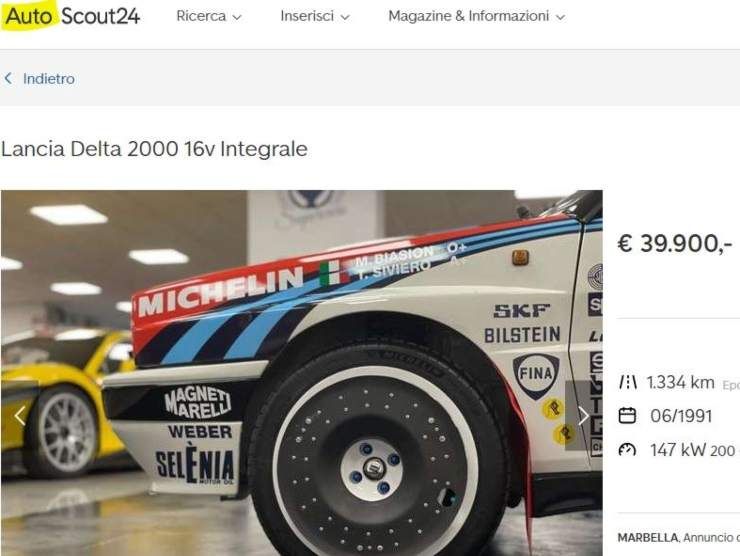 Fedele, fedelissima. Molto interessante il mezzo che vi presentiamo oggi e che è in vendita su AutoScout 24. Parliamo di una Lancia Delta HF Integrale 16v 200cv – Martini Racing Montecarlo 1990. Si tratta di un veicolo tributo e totalmente restaurato.