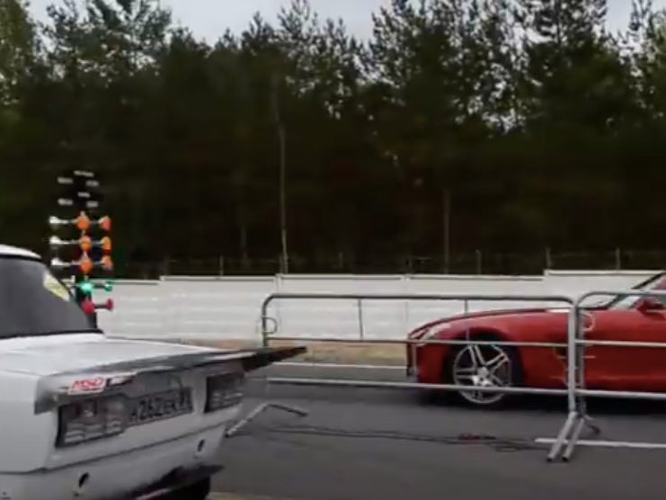 La rivale della Lada è una Mercedes-Benz SLS, un’auto davvero mostruosa sotto il punto di vista motoristico. La supercar tedesca infatti con un motore elaborato dal preparatore AMG può vantare uno scatto eccellente per una gara simile. L’auto è capace di arrivare a 100 chilometri orari in meno di quattro secondi e a 200 in poco più di 10. L’automobile è una rivale davvero notevole.