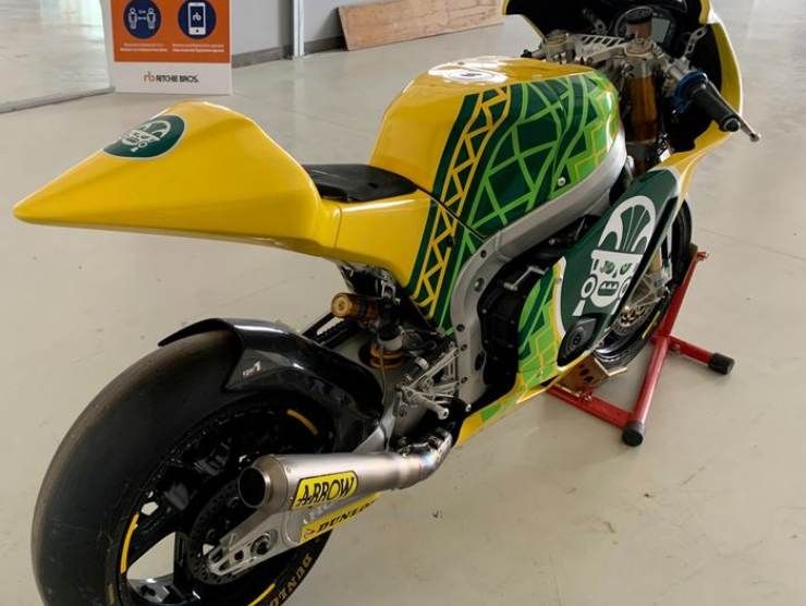 Si tratta comunque di una moto da esposizione che, nuova, ha un valore di 110mila euro. A rendere ancor più preziosa quest’esemplare in vendita su Katawiki è il fatto che questa moto ha corso nel 2011 nella categoria Moto 2 del Motomondiale. In quella stagione ha ottenuto due terzi posti sui circuiti di Spagna e Aragona, terminando la stagione al 6 posto con 127 punti.