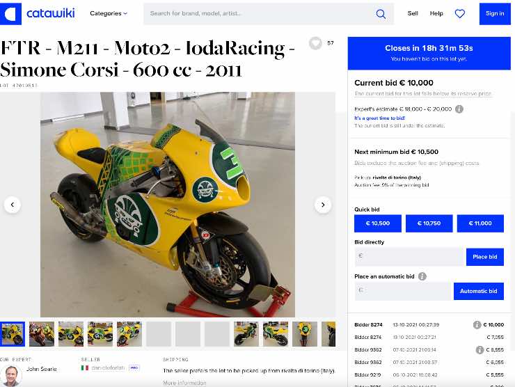 Su Katawiki troviamo la moto in vendita all’asta, con un’offerta attuale di 10mila euro.