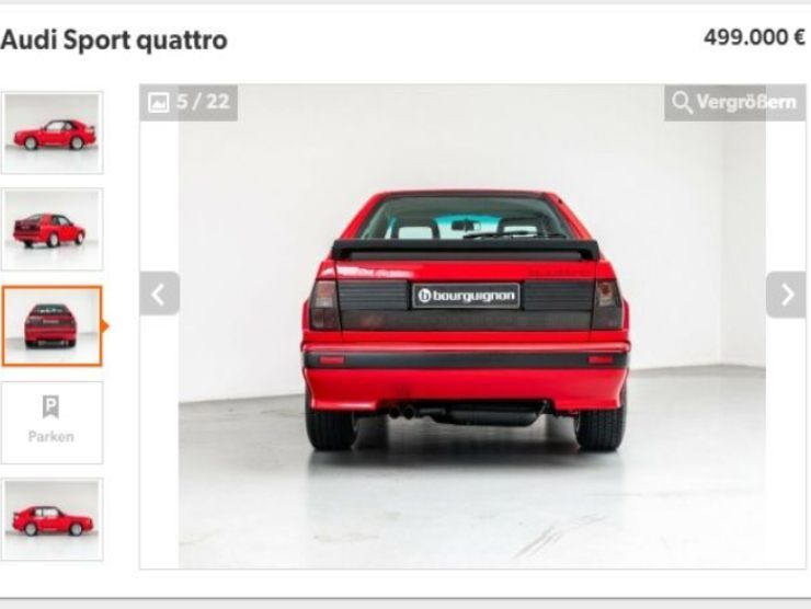 L’Audi Quattro in vendita su mobile.de ha l’ABS disinseribile, un sistema quattro con differenziale di bloccaggio regolabile, sedile riscaldato, alzacristalli elettrici e un serbatoio del carburante da 90 litri. Sul portale la troviamo in vendita a 499.000 euro.