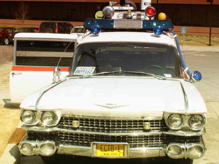 Per chi avesse vissuto sotto un sasso fino ad oggi, questa vettura è la storica automobile che nella fortunata saga Ghostbusters trasporta la squadra acchiappafantasmi con tutto il loro equipaggiamento. La Ecto-1 altro non è che una Cadillac Miller Meteor in configurazione ambulanza risalente al 1959, niente poco di meno.