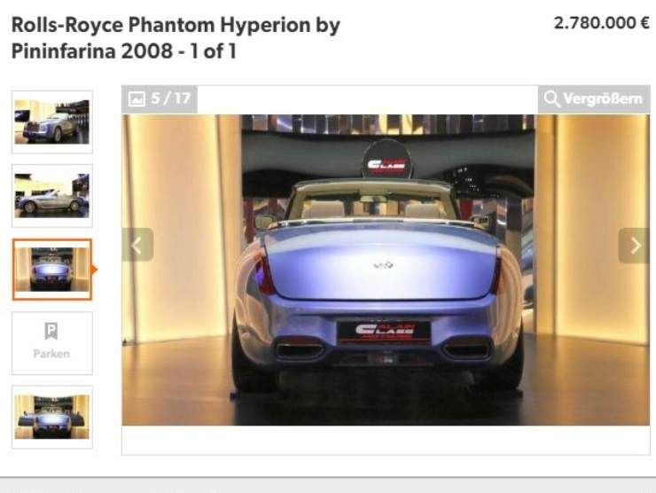 In vendita sul portale mobile.de l’unica Rolls-Royce Phantom Hyperion by Pininfarina. Non fatevi spaventare dal prezzo. D’altra parte, non ci si può aspettare niente di diverso da un’auto che è in vendita negli Emirati Arabi…