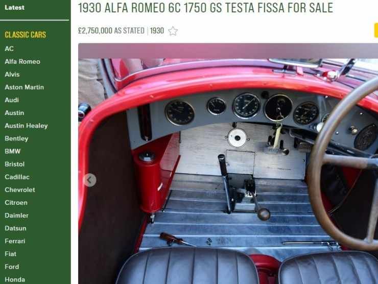 L’Alfa Romeo introdusse le sue auto a sei cilindri da 1752 centimetri cubi progettate da Jano nel 1929. Una di queste è l’Alfa Romeo Testa Fissa. La troviamo in vendita su Car & classic. Anche se, visto il prezzo, tutti noi (o quasi) potremo solo ammirarla in foto.