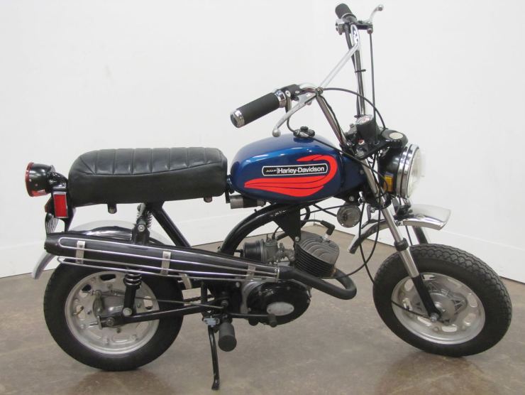 E proprio per questo motivo, nacque la Harley Davidson MC-65 Shortster del 1972; una “mini moto” piuttosto rara. Era molto più complessa nelle sue caratteristiche rispetto ad altri veicoli a due ruote degli anni ’60 ed era basata su un telaio davvero solido oltre che caratterizzata da sospensioni idrauliche, un supporto per targa integrato e un manubrio rinforzato. Era ben accessoriata nonostante le dimensioni limitate; in più la moto in questione incorporava uno scarico rialzato, doppia sella e parafanghi in acciaio inossidabile lucido.