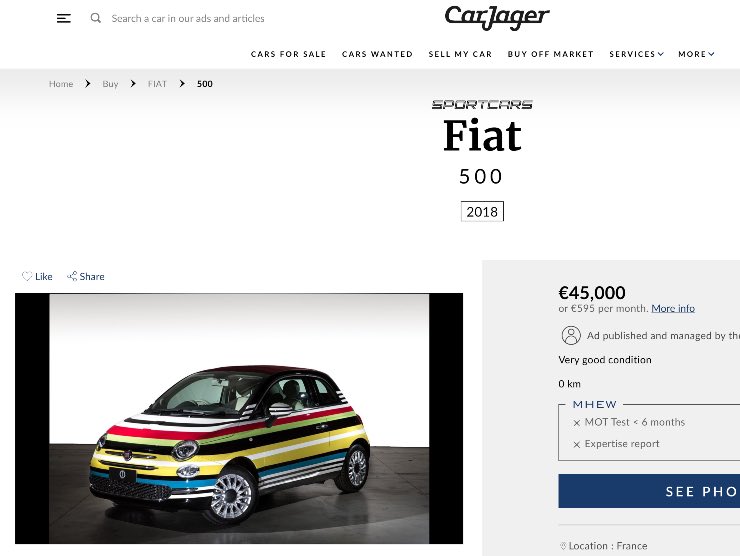 Una Fiat 500 celebrativa per rendere omaggio ad Angela Missoni, da sempre in prima linea nella ricerca sull’AIDS. Ora questo veicolo è in vendita sul portale CarJager. Scopriamola insieme.