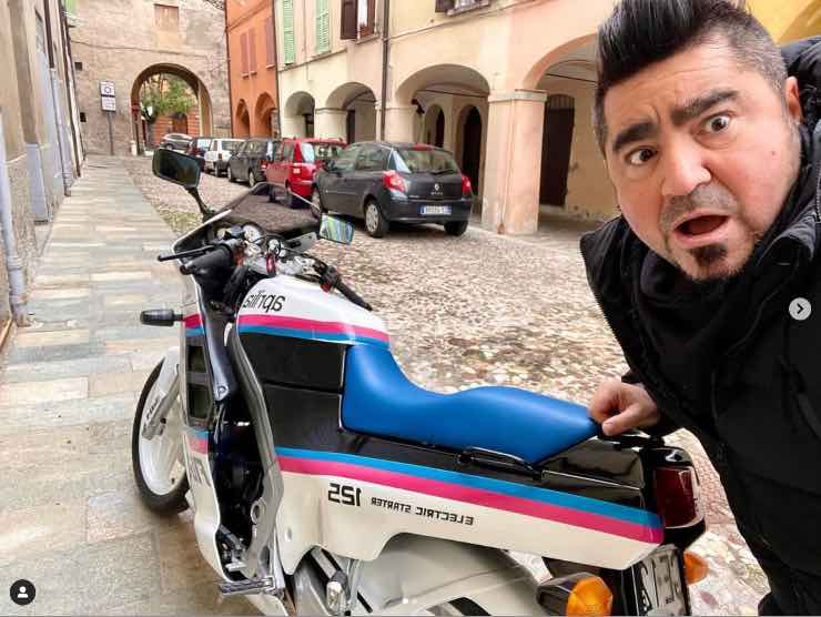 Poetico, Paolo Noise, nel presentare la sua Aprilia AF1 125. Chiaramente rimasta in garage per molto tempo. La AF1 è una motocicletta sportiva prodotta della casa Aprilia dal 1986 al 1992 in due cilindrate, 50 e 125 cm³. Quella di Paolo Noise è proprio un modello del 1986.