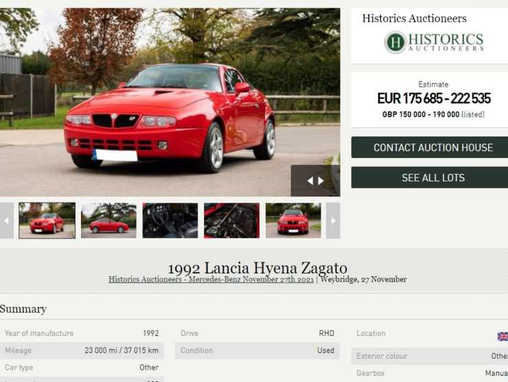 La Lancia Delta Zagato Hyena è una coupé sportiva prodotta dalla carrozzeria italiana Zagato con il marchio Lancia tra il 1992 e il 1993. Realizzata in soli 25 esemplari, è derivata dalla Lancia Delta HF Integrale. Ora si può acquistare su Classic Driver.