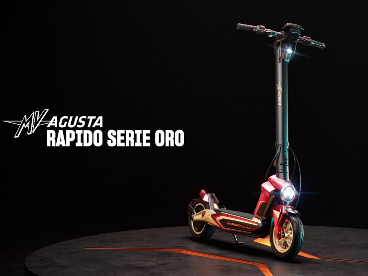 L’azienda, però, non sazia del mercato motociclistico si è buttata per la prima volta anche in quello dei monopattini elettrici. Difatti, è stato svelato il nuovo Rapido Serie Oro della MV Agusta, con aspetto decisamente da moto e poco da monopattino.