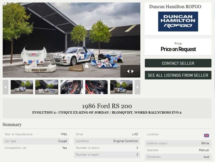 Inizialmente venduto a Re Hussein di Giordania per un uso competitivo nel suo paese d’origine, il telaio 20 era l’RS200 più veloce che la fabbrica avesse mai prodotto, con un’incredibile potenza di oltre 700 CV. La scheda pubblicata su Classic Driver assicura che l’auto fosse pronta e in condizioni meccaniche eccezionali. È anche immatricolata su strada nel Regno Unito.