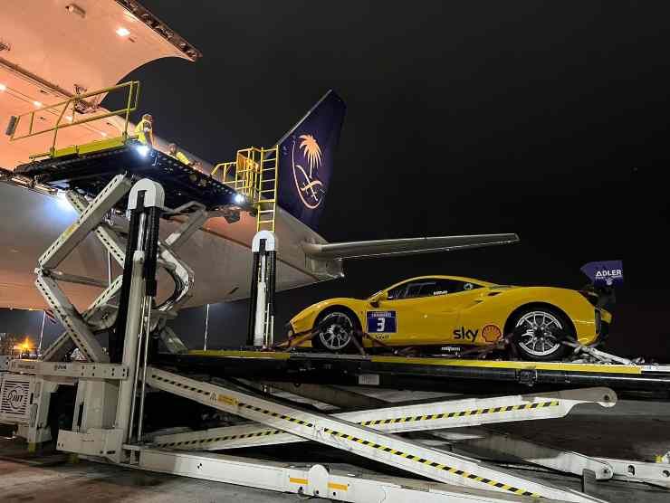 A Milano Malpensa un volo charter di Saudia Cargo operato con B77F è stato riempito con un carico speciale di Ferrari stradali da corsa. Con lo stupore di molti addetti in piazzale, certi mezzi non sono passati inosservati soprattutto anche per la loro quantità. Malpensa anche in questi mesi sta continuando a crescere di oltre il 30% sul segmento merci.