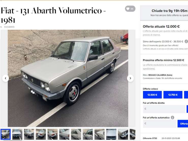 L’auto può coprire qualsiasi distanza su strada. Visibile nel centro storico di Reggio Calabria. Su Catawiki l’offerta corrente è di 7mila euro.