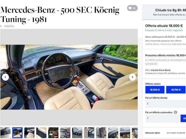 Su Catawiki l’offerta corrente è di 18mila euro. Ma il prezzo di acquisto finale potrebbe sfiorare i 30mila euro.